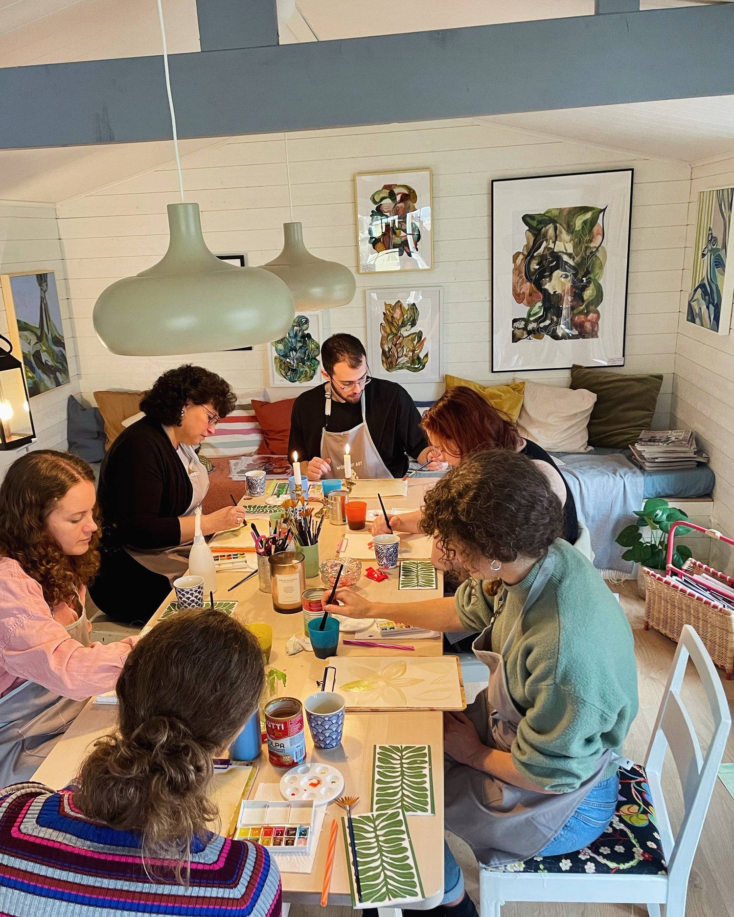 Ett mysigt och inspirerande tillfälle att testa på och prova olika tekniker och material. Härlig miljö att sitta i hennes mysiga ateljé & skapa!