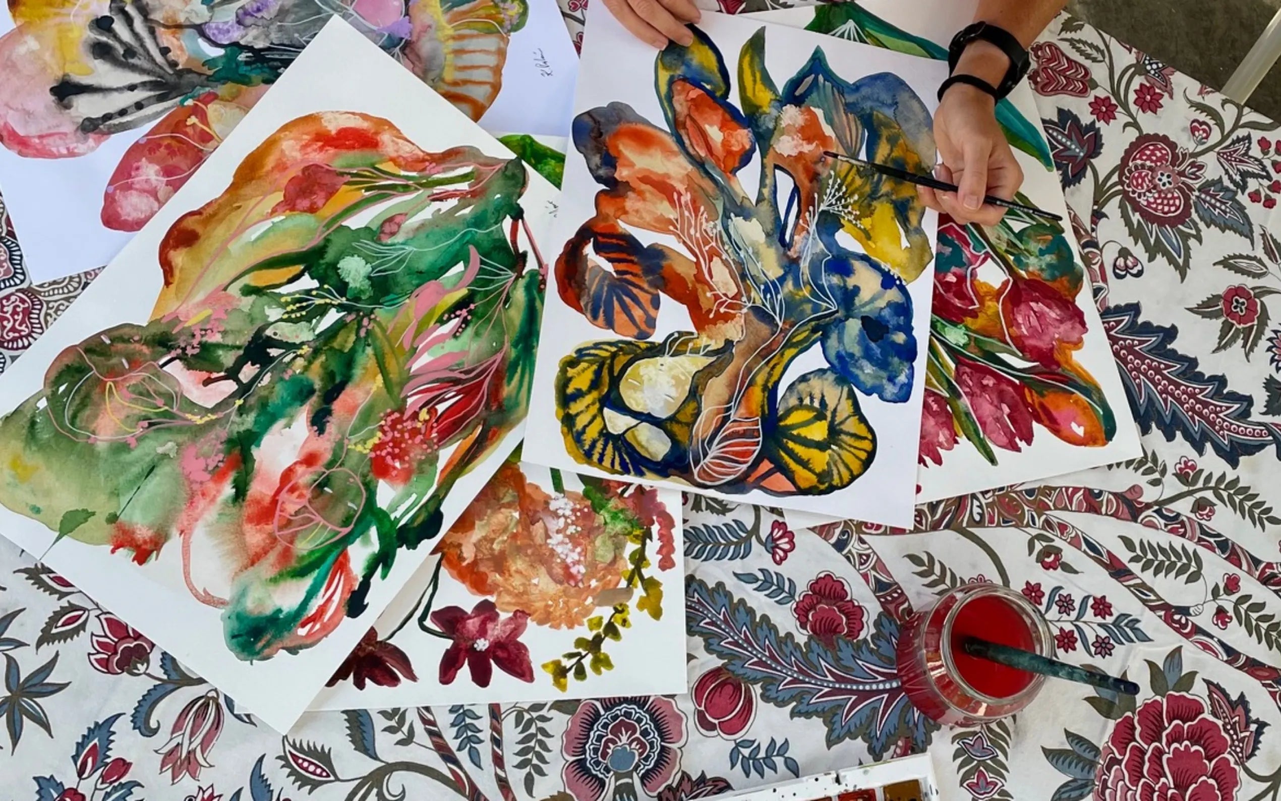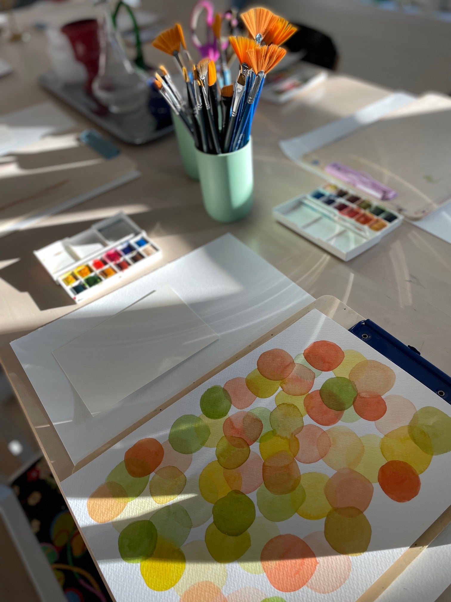 En kreativ akvarellworkshop där du får testa på akvarellens magiska tekniker. Våga släppa loss med färg & form och utforska din egna stil.