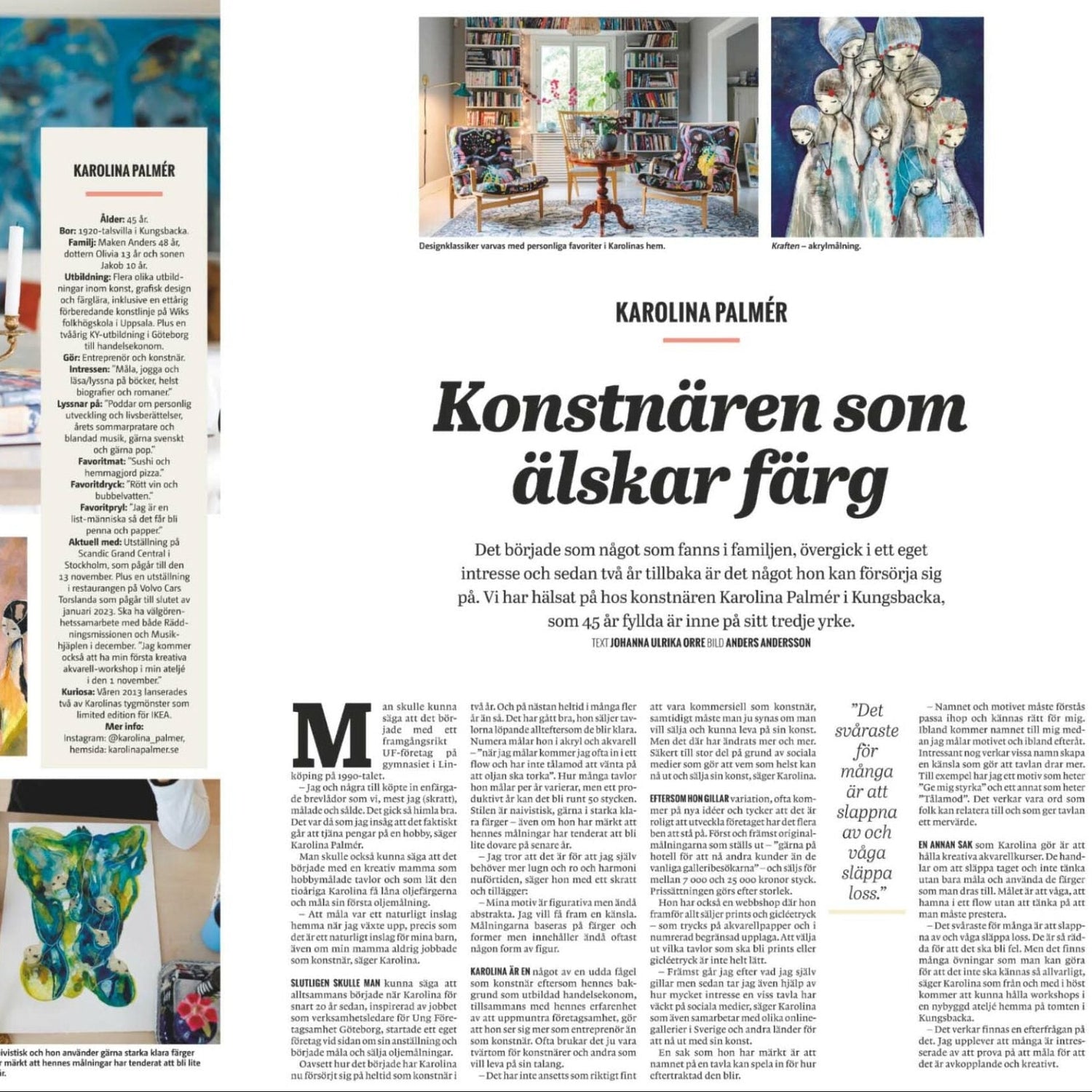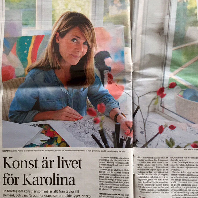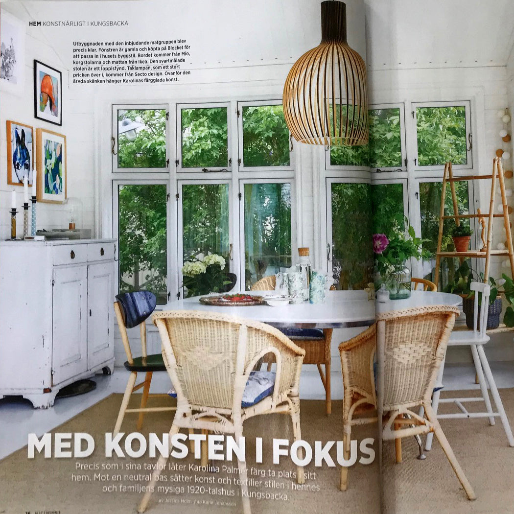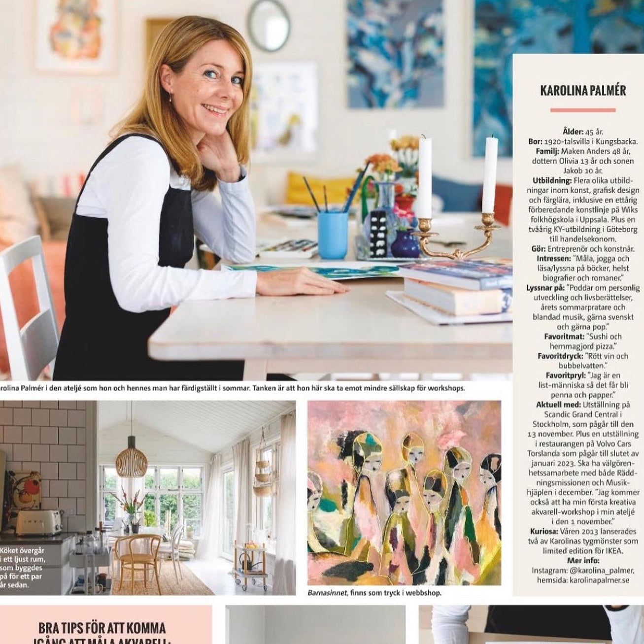 Mina färgglada motiv fick en helssida i Leva & Bo. Jag samarbetade med Bonniers NOA Gallery under de 6 år som galleriet fanns.