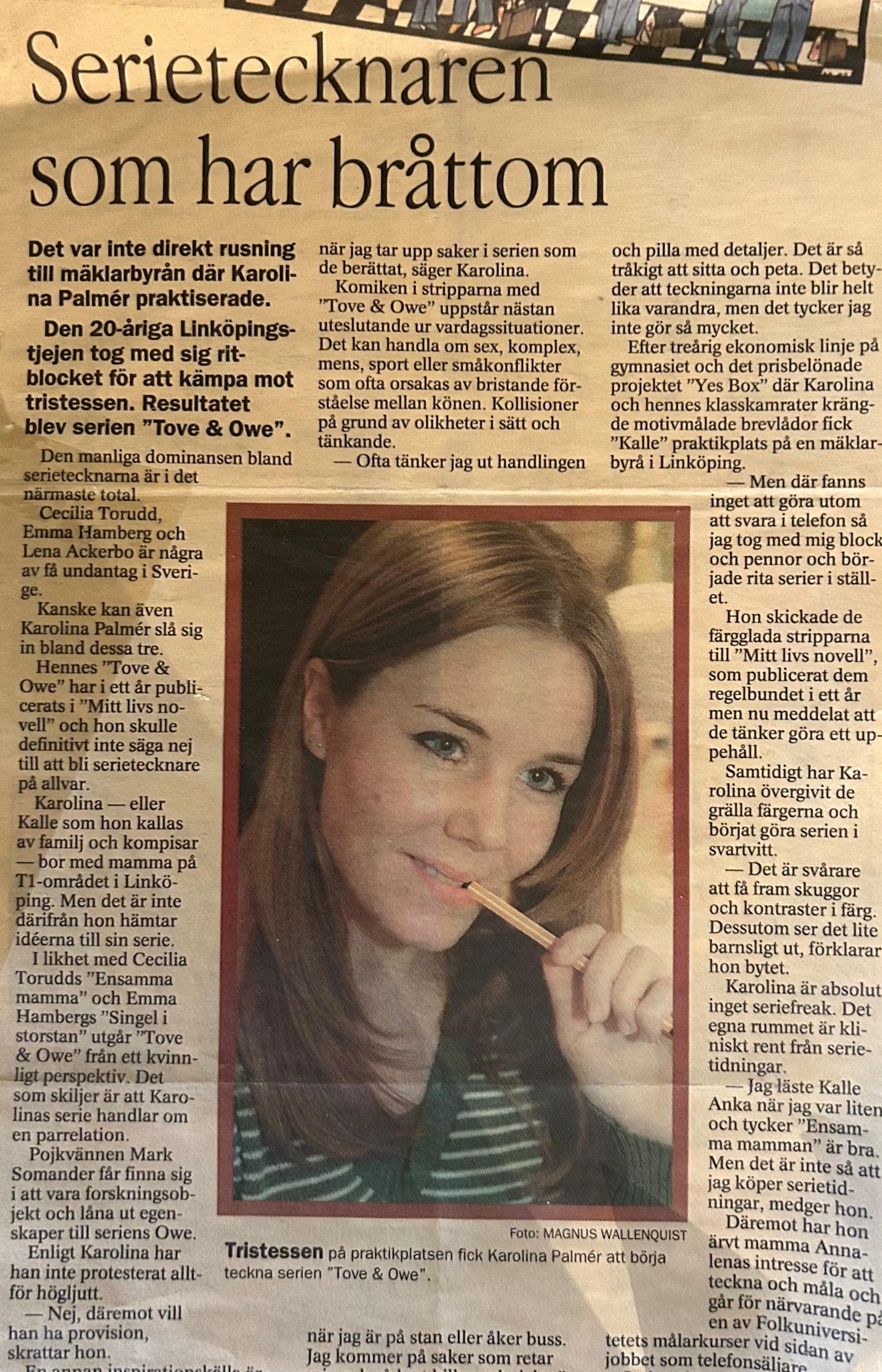 Min första artikel om min konst. När jag tecknade serier för tidningen Mitt Livs Novell.