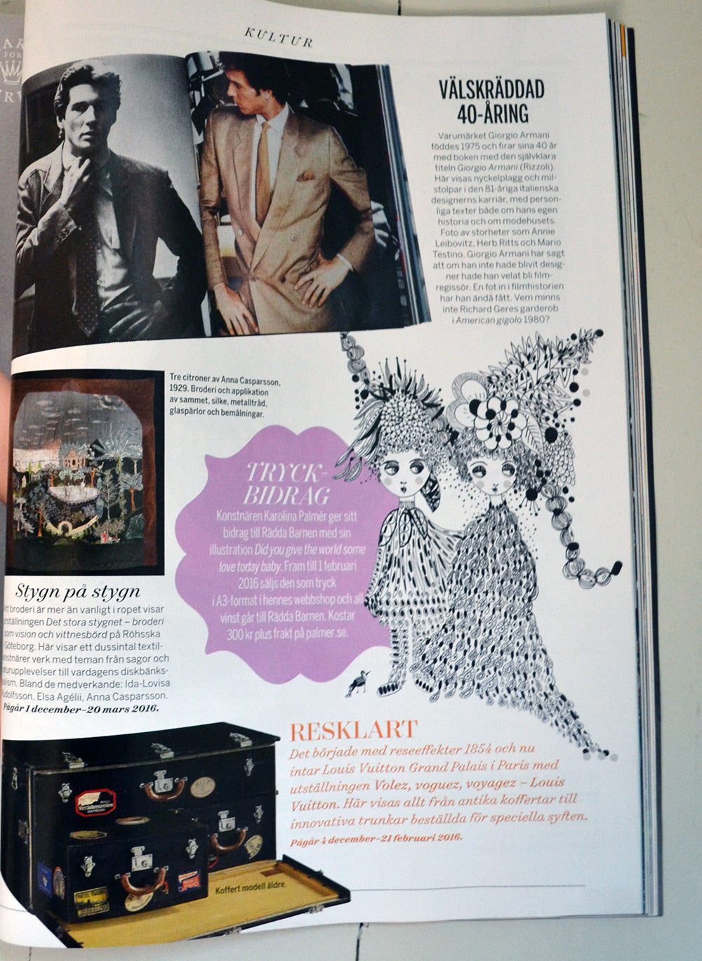 År 2016 skapade jag trycket “Did you give the world some love today baby”, som inbringade medel till Rädda Barnen och uppmärksammades i både Damernas Värld och Hus & Hem.
