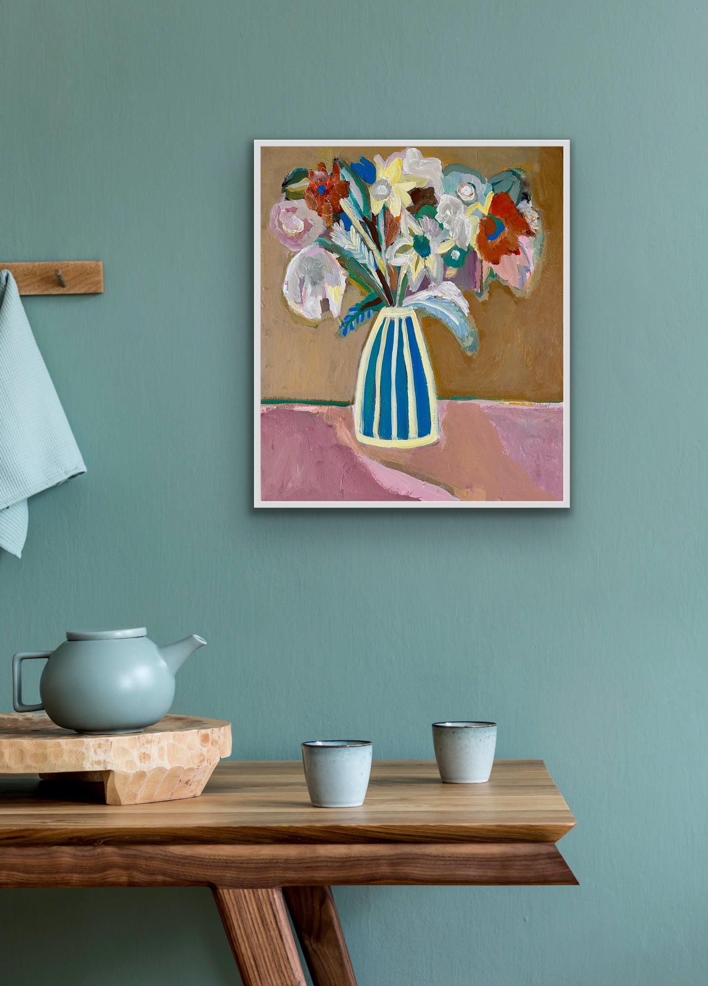 Vill du se målningen ”live” och inte har möjlighet att komma till ateljén i Kungsbacka så går det bra boka en FaceTime-visning eller så kan jag skicka ett filmklipp på målningen. Jag kan även göra ett fotomontage på målningen i din hemmiljö om du mailar en bild på rummet. Jag skickar målningar över hela världen. Målningarna paketeras väl i frigolit, bubbelplast och kartong och skickas med DHL.