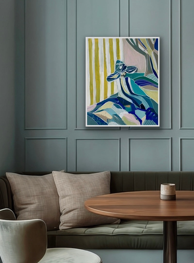 "Jordad" är ett handmålat originalverk i akryl där mjuka färger och organiska former möts i ett lugnt, harmoniskt uttryck. Verket symboliserar stabilitet och närvaro, en stilla kontakt med naturen.