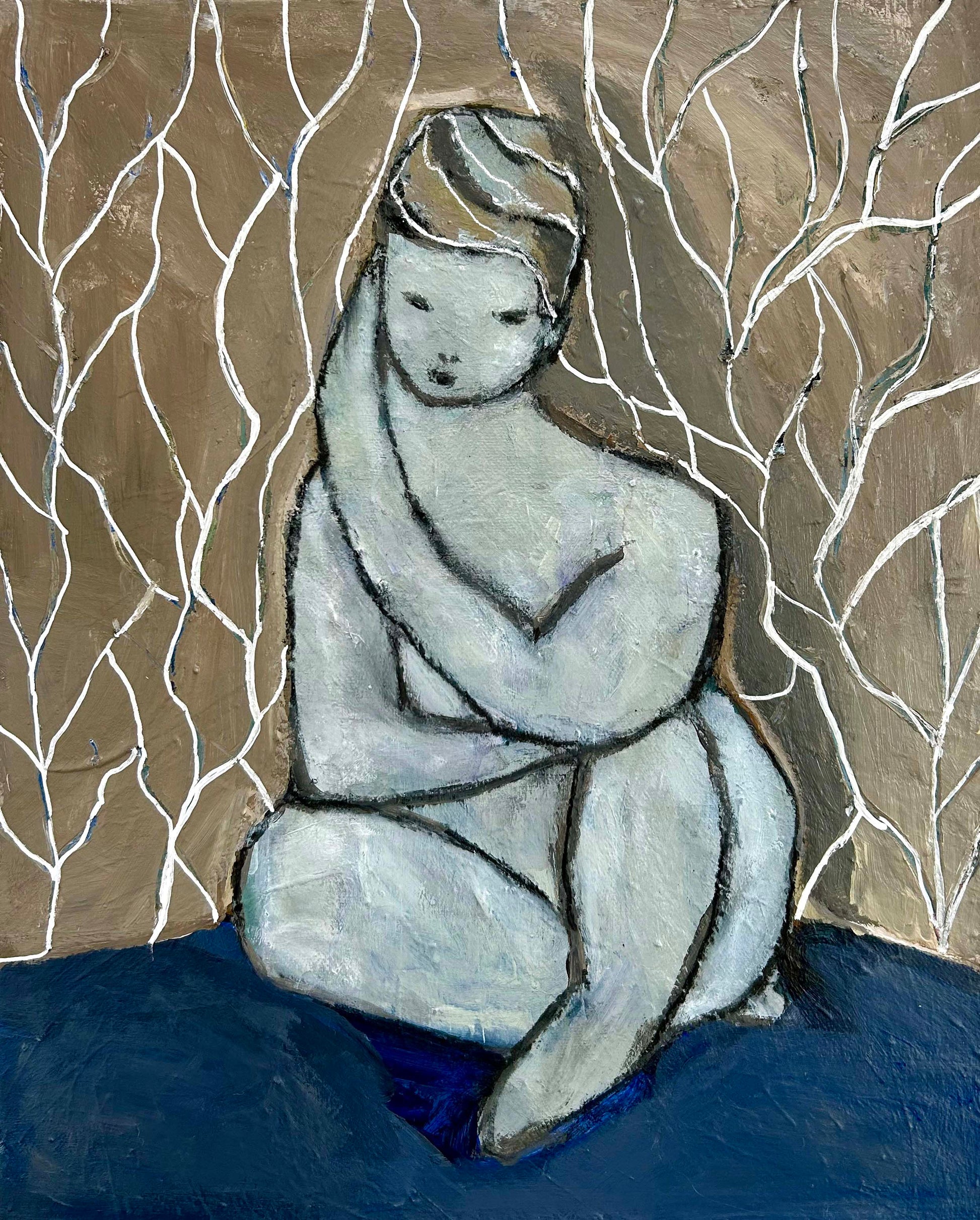 "Ta det med ro" är ett handmålat originalverk i akryl där jordnära färger och former möts i ett harmoniskt uttryck. Verket symboliserar en känsla av lugn och trygghet.